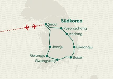 Im Seonamsa-Tempel erwartet Sie eine besinnliche Teezeremonie mit aromatischem Grüntee. Später in Boseong besichtigen Sie eine traditionelle Grünteeplantage, wo Sie mehr über den Anbau und die Herstellung dieses beliebten Getränks erfahren