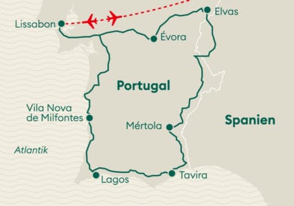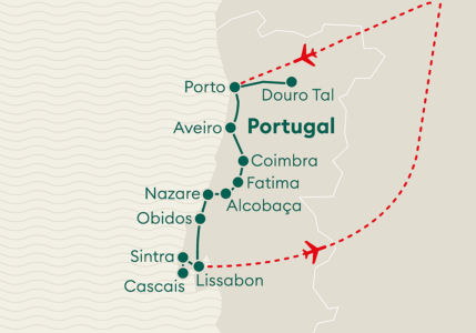 Bem-vindo im Land der Seefahrer! Auf unseren Rundreisen erleben Sie Portugal mit allen Facetten und besuchen die wichtigsten Höhepunkte. Portugal begeistert mit seinen vielfältigen Landschaften und den zahlreichen kulturellen Schätzen. Stets immer nahe ist das Meer, auf über 800 Kilometer erstreckt sich die westliche Atlantikküste auf dem Festland Portugals. Im Atlantik sind die beiden Inselgruppen Azoren und Madeira zu finden, die auch zu Portugal gehören.