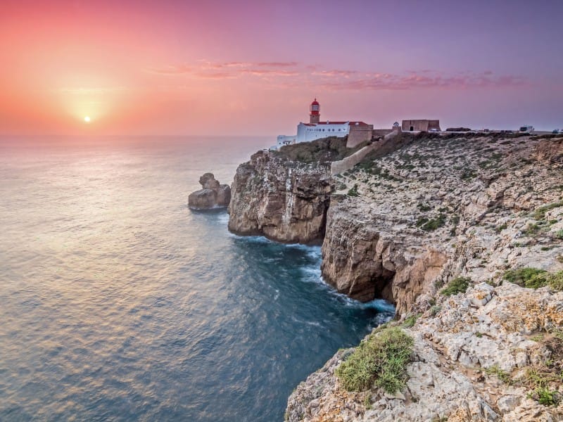 Später fahren Sie zum Felsenkap Cabo de São Vicente. Dieses bildet die Südwestspitze des europäischen Festlands und die Algarve endet dort mit einer felsigen, bis zu 70 Meter hohen Steilküste mit karger Vegetation. Auf der Spitze der Klippen steht einer der beeindruckendsten Leuchttürme Portugals. Das Leuchtfeuer des Cabos de São Vicente Leuchtturms kann bis zu 45 km entfernt gesehen werden und ist somit eines der hellsten Lichter in Europa.