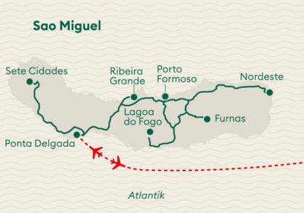 Mitten im Atlantik liegt das urwüchsige Insel-Paradies: die Azoren – eine optische Mixtur aus Hawaii und Irland. Der Archipel ist eine Naturschönheit par excellence: azurblaue Kraterseen, spukende Geysire und immergrüne Hügel sowie Urwälder und Wasserfälle, die direkt ins Meer rauschen, wo sich Wale und Delfine tummeln. Die reine Flugzeit ab der Schweiz auf die Azoren beträgt nur 5 Stunden, trotzdem sind die Inseln bisher vom Massentourismus verschont geblieben.