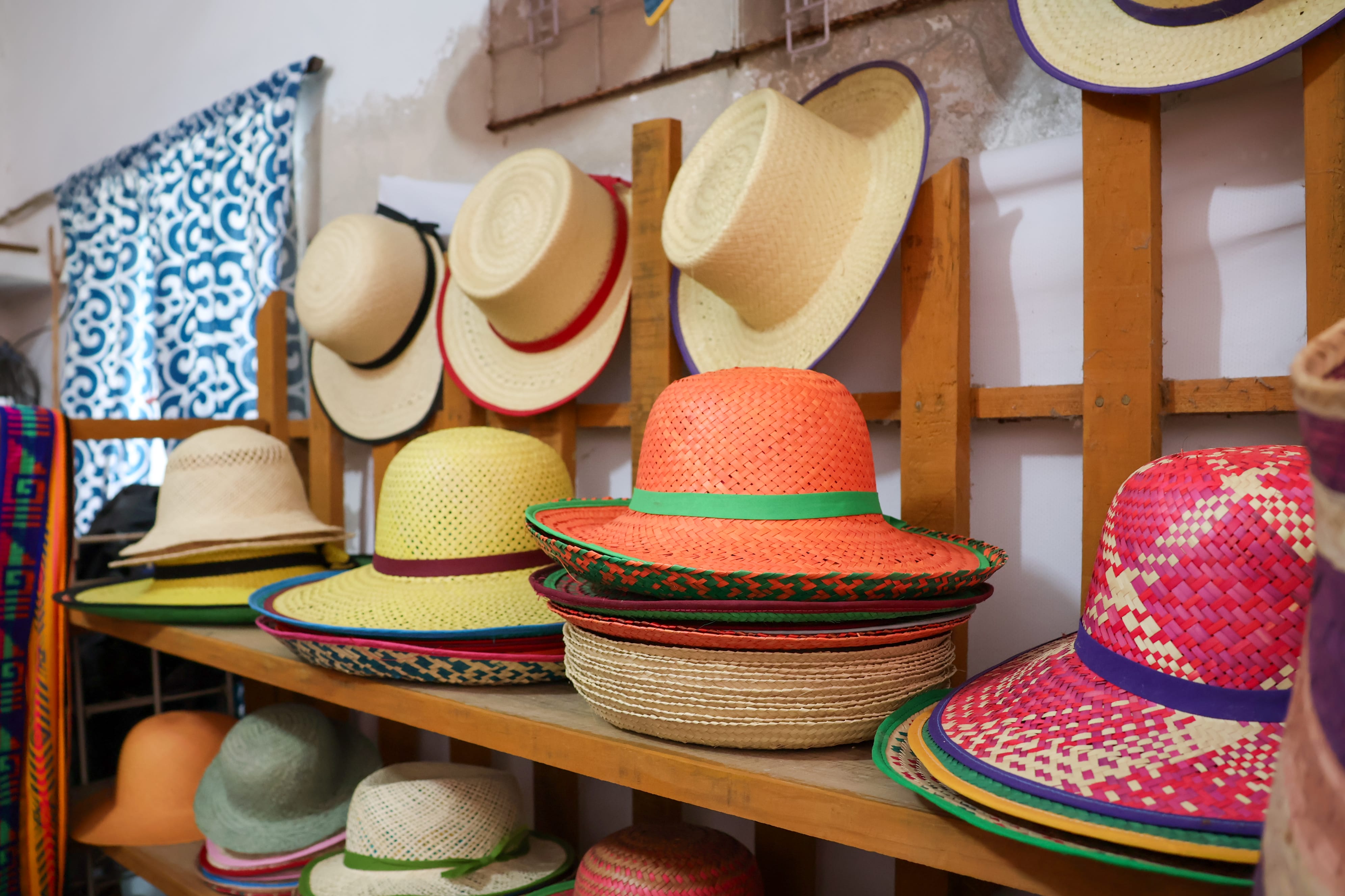 Schon beim Betreten ihres Hauses fallen die Strohhüte in allen möglichen Formen und Farben auf. Auch Portemonnaies, Untersetzer, Armbänder und – passend zum «Día de Muertos» (Allerseelen) – kleine Skelette bietet Doña Chari in ihrem Laden feil. Der Showroom gleicht einem kleinen Museum: ein Fächer hier, eine Tasche da und versteck lugt neckisch eine kleine Figur vom Strohdach zu den Besuchern hinunter.